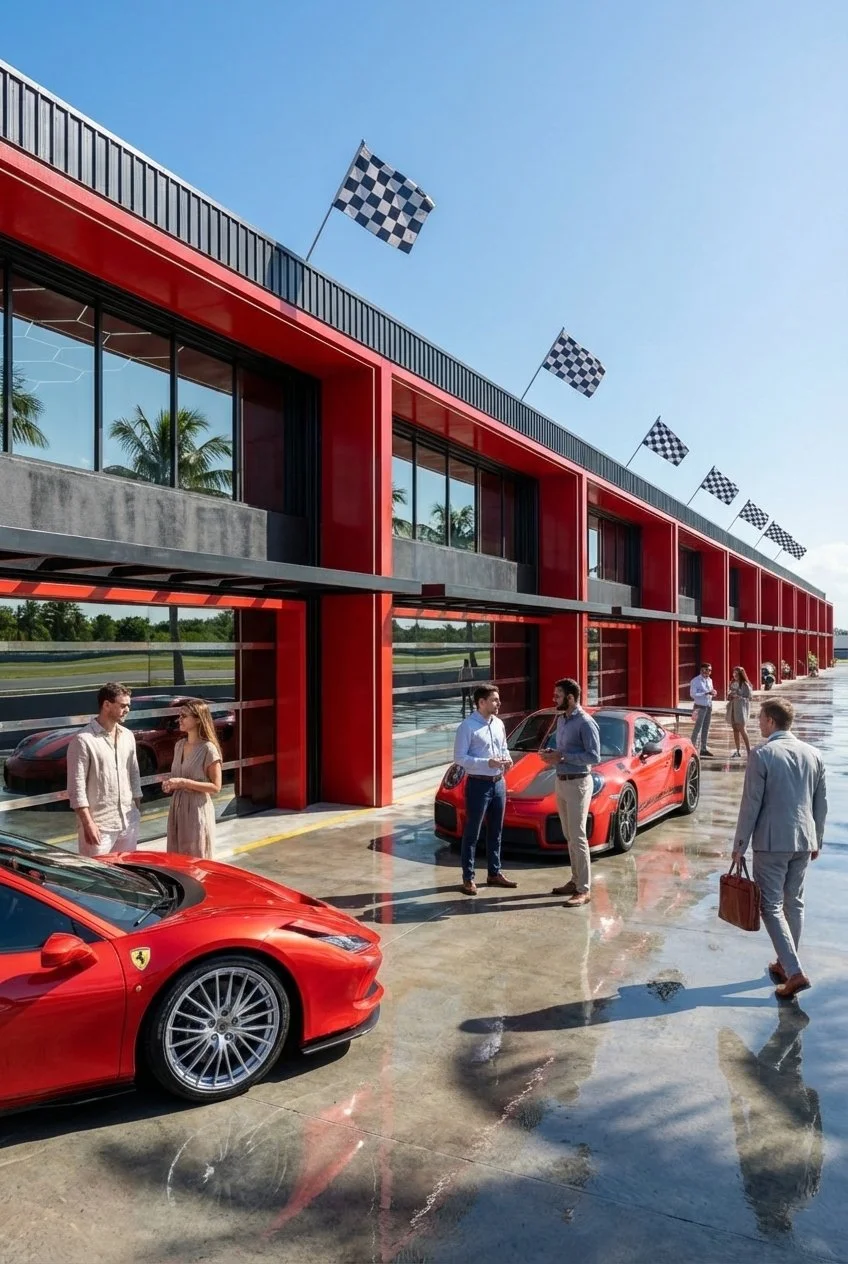 Private Garage Space: With dedicated garage access, you can store your vehicles safely and conveniently, making it ideal for those bringing their own supercars or racing vehicles to the Speedway.